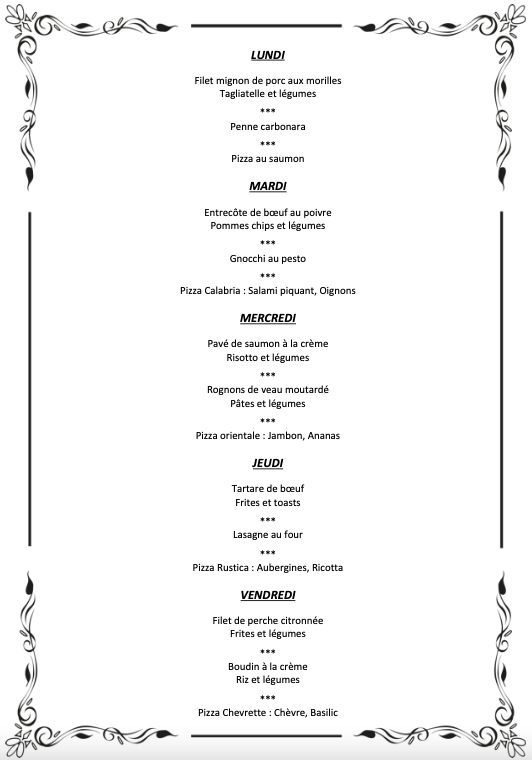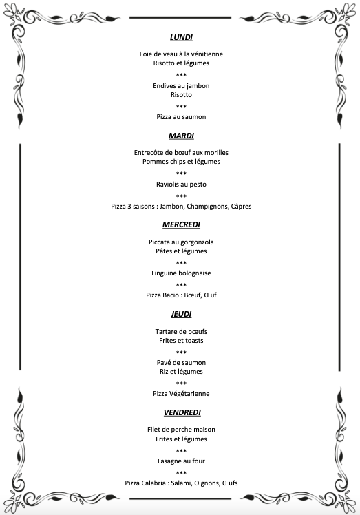 Venez déguster nos menus créés avec plaisir par notre chef pour votre plus grand plaisir gustatif